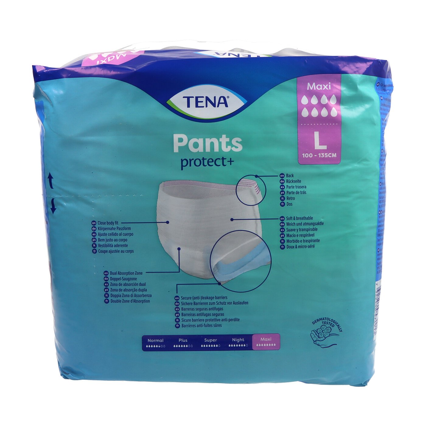As calcinhas Tena Pants Maxi Grande são calcinhas descartáveis superabsorventes projetadas para adultos com incontinência severa a muito grave. Proporcionam máxima proteção e conforto ao longo do dia.
