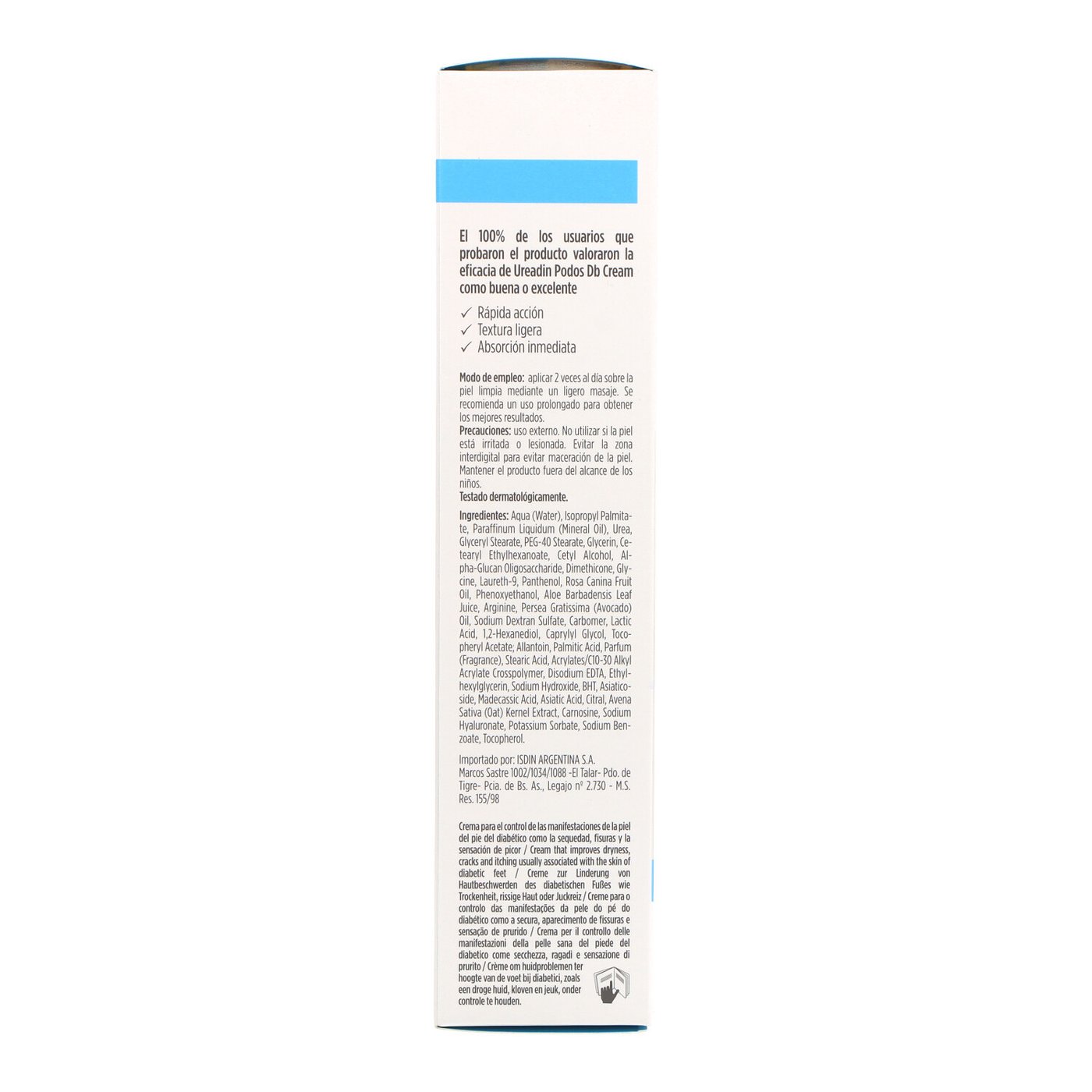 <p> Ureadin Podos Db Cream, da marca líder em cuidados com a pele, Ureadin, é um produto especialmente formulado para pessoas com diabetes. A sua fórmula inovadora e patenteada proporciona um cuidado eficaz à pele dos pés, proporcionando um tratamento intensivo que hidrata, acalma e repara a pele em profundidade. Este creme não só preserva a integridade da pele, mas também aumenta a sua elasticidade e resistência, protegendo os pés de possíveis lesões ou infecções. Ideal para pés com ressecamento, hiperqueratose, fissuras e calcanhares rachados.</p>Composição do produto