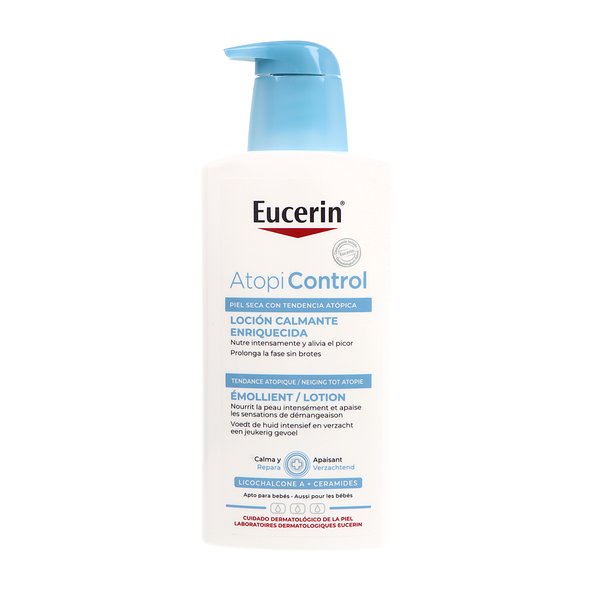 Eucerin Atopicontrol Lotion é um produto inovador desenvolvido para pessoas com pele atópica. Esta loção intensiva, não oleosa e de rápida absorção hidrata e acalma a pele seca e escamosa, reduzindo a vermelhidão e a coceira, restaurando o conforto da pele.