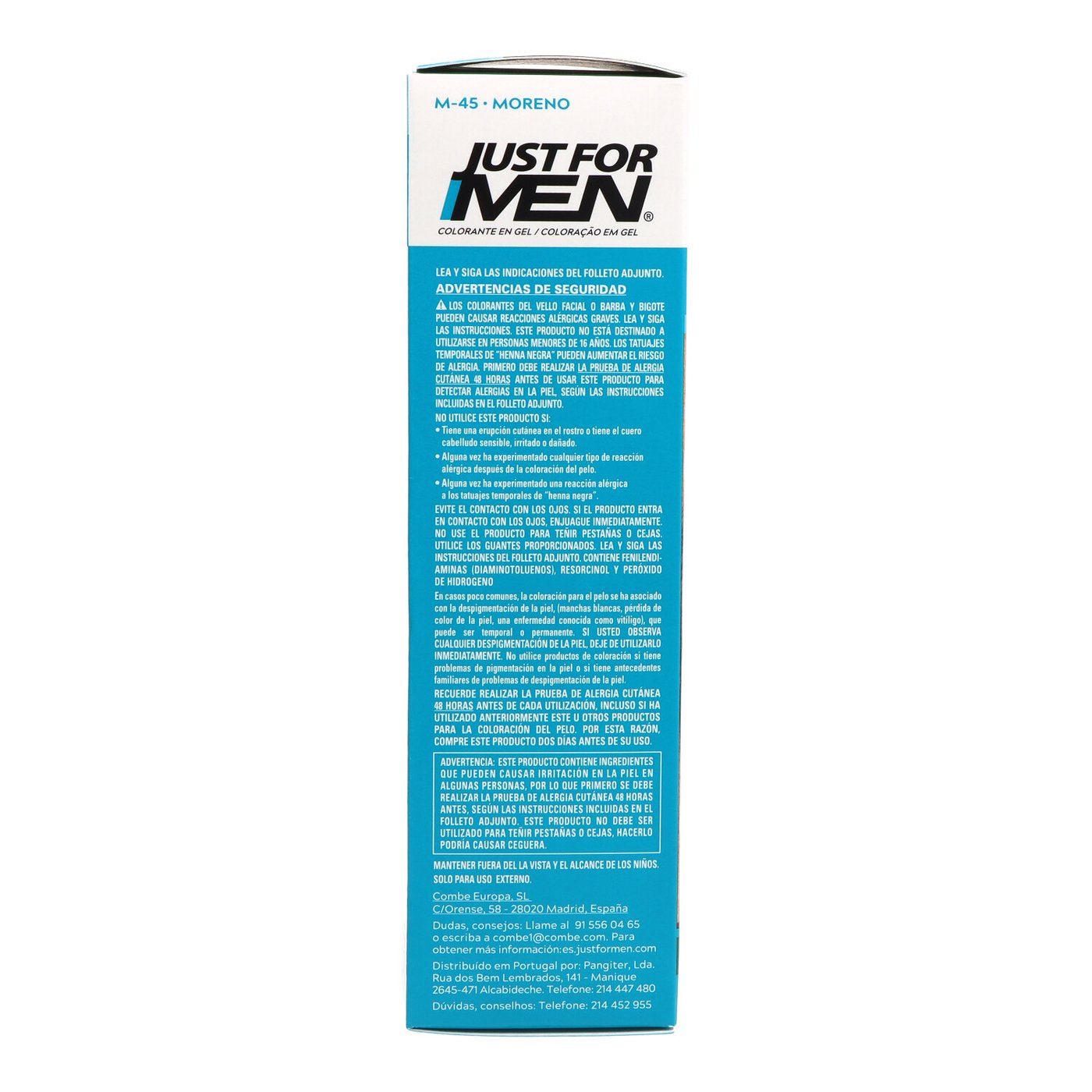 A fórmula Just For Men para barba e bigode castanhos contém ingredientes selecionados por suas propriedades de coloração e condicionamento. Estes incluem água, etanolaminas, ácido esteárico e p-fenilenodiamina. Ele também contém alguns ingredientes potencialmente alergênicos, como resorcinol e ácido etidrônico, por isso é importante testar o produto em uma pequena área da pele antes de usá-lo em todo o rosto.