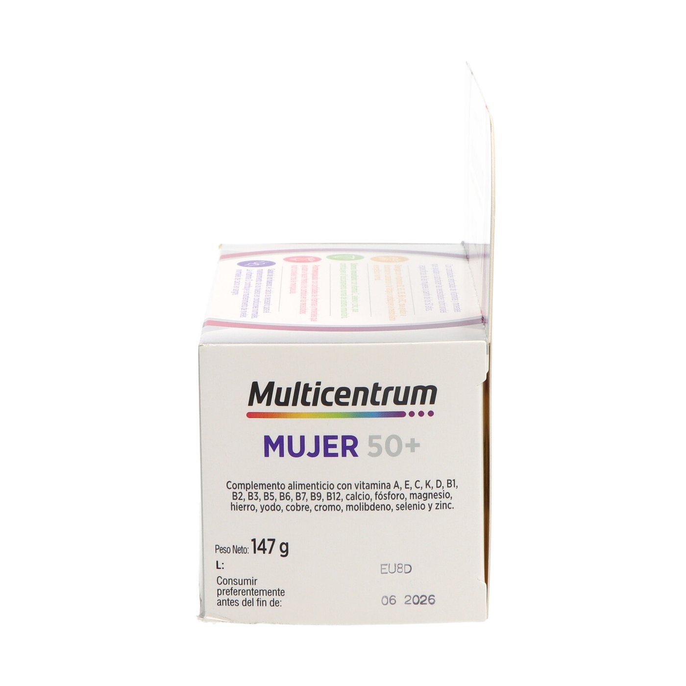 Multicentrum Woman 50+ é um suplemento multivitamínico formulado para mulheres com mais de 50 anos, fornecendo vitaminas, minerais e micronutrientes essenciais para energia, sistema imunológico e saúde óssea e muscular.