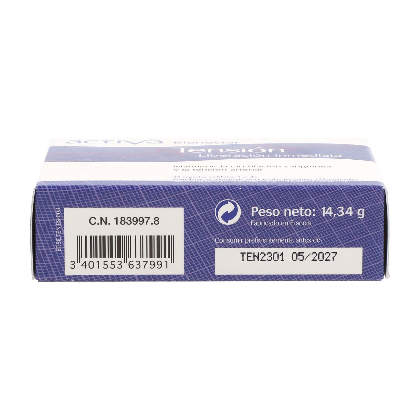 Activa Wellbeing Tension é um suplemento alimentar desenvolvido para ajudar a regular a pressão arterial. Composta por ingredientes naturais, esta fórmula atua diretamente no sistema cardiovascular, otimizando o seu funcionamento e promovendo um estado de bem-estar geral. Este prático recipiente contém 30 cápsulas fáceis de engolir e perfeitas para incorporar na sua rotina diária.