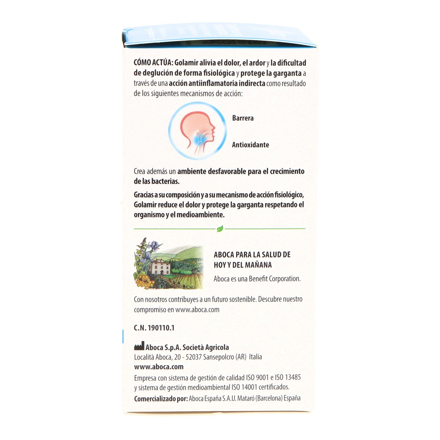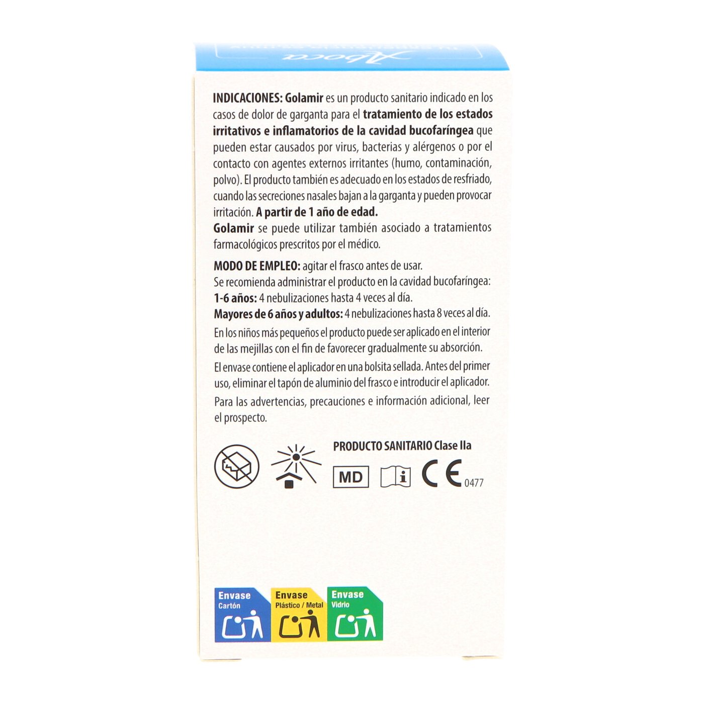 O spray sem álcool Golamir 2act cria uma película protetora natural na garganta, aliviando a dor, a queimação e a dificuldade para engolir. Possui um agradável sabor de frutas vermelhas — adequado para crianças a partir de 1 ano de idade.