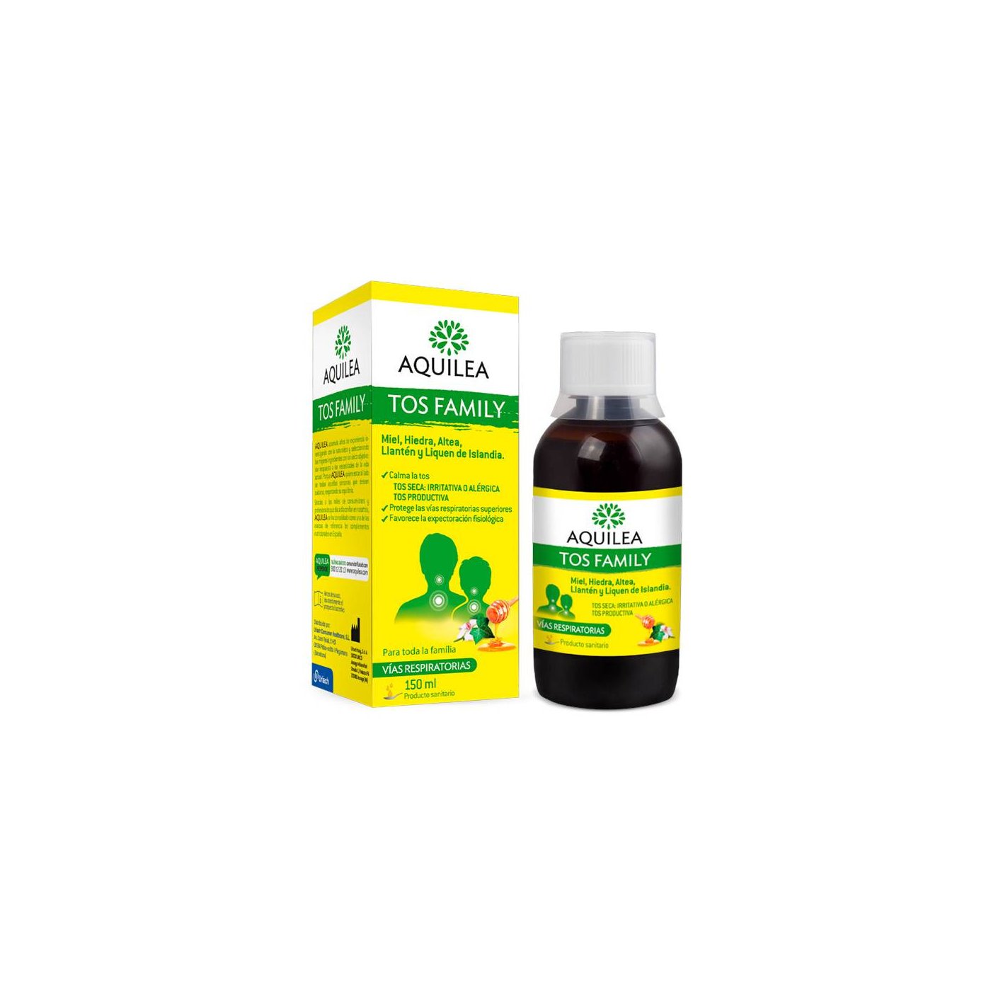 Produto Aquilea Cough Family 150 ml com extratos naturais que criam uma película protetora em casos de tosse, protegendo contra irritações e mantendo a funcionalidade do trato respiratório superior.COMPOSIÇÃO DO PRODUTO