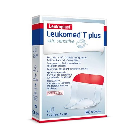 Leukomed T Plus Skin Sensitive é um curativo transparente e impermeável para cobertura de feridas com exsudato leve a moderado. Ideal para feridas pós-cirúrgicas em peles sensíveis e frágeis. Classe I estéril, marcação CE. Uso externo exclusivo.