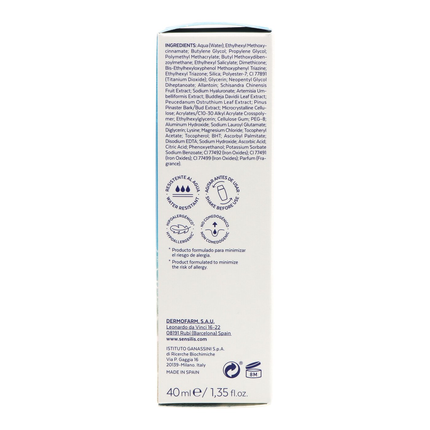 Aqua (água) Polirricinoleato, Poligliceril-6 Poli-hidroxiestearato, Poliéster-7, Poligliceril-3 Diisoestearato, Etilhexil Triazona, Neopentil Glicol Diheptanoato, Cera de Euphorbia Cerifera Cera (Candelilla), Hidroxiacetofenona, Manteiga de Semente de Theobroma Cacao (Cacau), Alantoína, Acetato de Tocoferila, Extrato da Fruta de Schisandra Chinensis, Hialuronato de Sódio, Diglicerina, Extrato de Artemisia Umbelliformis, Extrato da Folha de Buddleja Davidii, Extrato da Folha de Peucedanum Ostruthium, Tocoferol, Extrato da Casca/Broto de Pinus Pinaster, Palmitato de Ascorbila, Álcool Cetílico, 1,2-Hexanediol, Poliglicerina-6, Glicerina, Sulfato de Magnésio, Hectorita de Disteardimônio, Benzoato de Sódio, Sorbato de Potássio, Perfume (Fragrância).