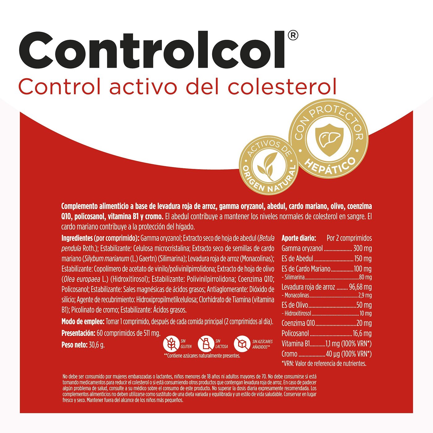 Controlcol 60 Tablets é um suplemento alimentar que ajuda a manter os níveis normais de colesterol no sangue e a proteger o fígado. Com ingredientes como fermento de arroz vermelho, ga,a orizanol, bétula, cardo leiteiro, azeitona, coenzima Q10, policosanol, vitamina B1 e crómio, este produto oferece uma solução natural para o cuidado cardiovascular.