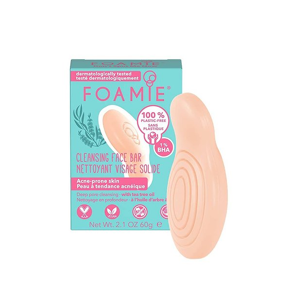 O sabonete facial sólido Foamie 60g para pele acneica foi desenvolvido para limpar e cuidar profundamente da pele com tendência a acne. Sua fórmula, que inclui carvão ativado e óleo de melaleuca, ajuda a eliminar impurezas, reduzir o excesso de oleosidade e prevenir erupções. Este sabonete sólido é prático e ecológico, ideal para levar nas suas viagens.