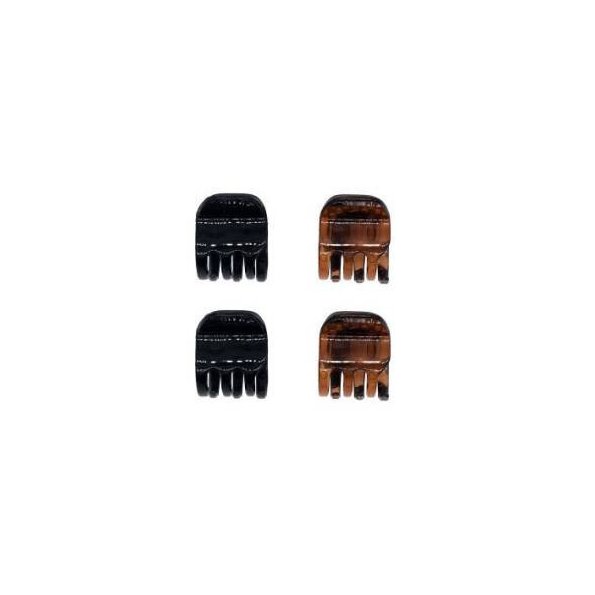 Pacote com 4 prendedores de cabelo em tons de concha e preto medindo 2,5 cm. Elegante e funcional, ideal para prender fios de cabelo com estilo.