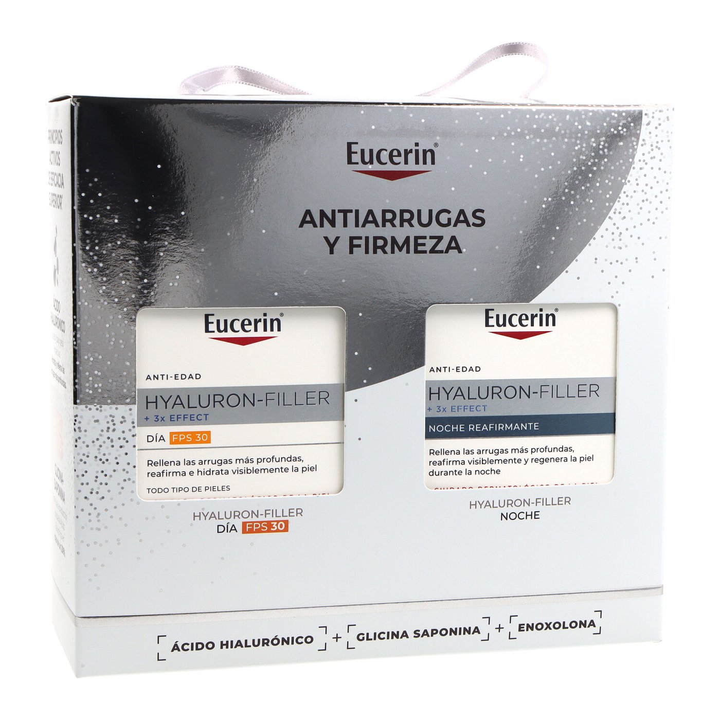 Desfrute do pacote Eucerin Hyaluron-Filler Dia+Noite para pele seca, que inclui creme de dia e de noite. O tratamento perfeito para combater rugas e reidratar a pele.