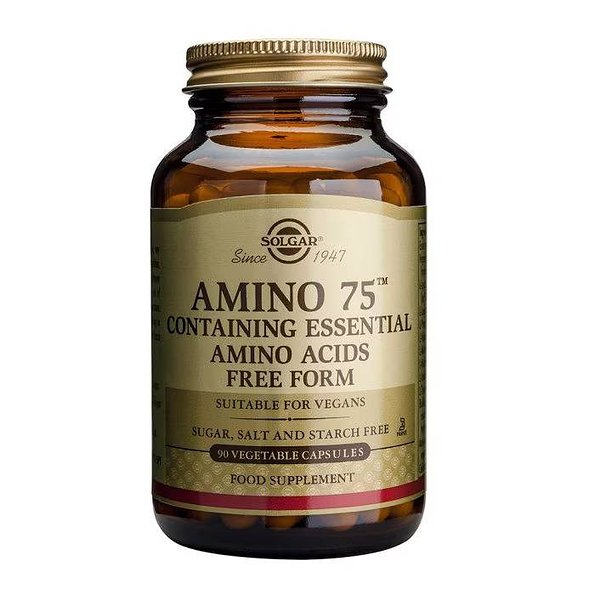 Solgar Amino 75 é uma fórmula potente que fornece oito aminoácidos essenciais — L-lisina, L-leucina, L-fenilalanina, L-valina, L-metionina, L-histidina, L-isoleucina e L-treonina — em forma livre para melhor absorção. Estes aminoácidos são indispensáveis ao organismo, mas não são produzidos naturalmente, sendo fundamentais para a síntese proteica, manutenção dos tecidos e produção de hormonas, enzimas e neurotransmissores.